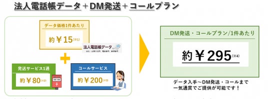 法人電話帳ですと、1企業あたり約295円でデータの入手からDM発送・後追いコールまで