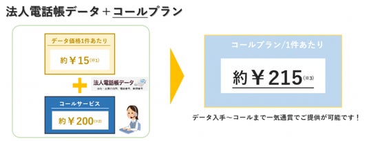 法人電話帳ですと、1企業あたり約215円でデータの入手からコールまで可能でございます。