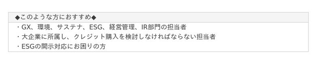 13:35~13:45:SSBJ開示に使えるカーボンクレジットの活用
