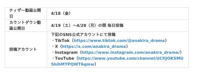本日4月18日(金)から下記アカウントにてティザー動画、4/19(土)からカウントダウン動画が公開されます。