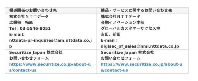 ※本ニュースリリースは株式会社NTTデータとSecuritize Japanが共同で配信しています。重複して配信されることがありますが、ご了承願います。