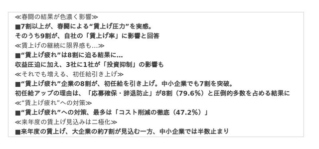 そうした中でも、新卒採用の競争激化を背景に、初任給を引き上げる企業が多数を占めており、人材確保を最優先事項と捉える企業の姿勢が浮き彫りとなりました。