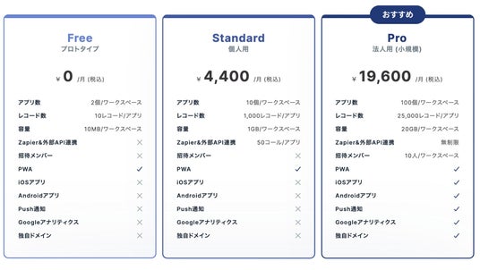 Click自体は無料で登録が可能ですが、今回のLP機能は「Pro Plan」にのみ付帯されています。