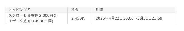 「スシローお食事券」は、povo2.0に登録のメールアドレスへ購入後即時で配信します。なお、「スシローお食事券」の受取期限は2025年6月15日、有効期限は受取日から5カ月後の月末です。