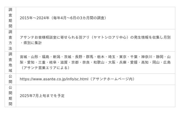 ※「シロアリ注意報」は2007年にアサンテが開始した日本初のシロアリの羽アリ発生情報をお知らせする取り組みです。