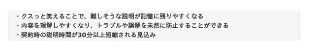 こうした賃貸契約時の説明に、お笑い要素を取りいれた動画コンテンツを採用する狙いは、以下の通りです。