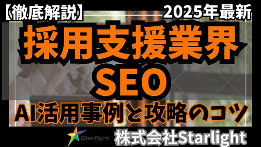 株式会社Starlight(本社:東京都豊島区、代表取締役社長:黒田 真乃介、以下「当社」)は、採用支援業界の皆様を対象に「2025年版 採用支援業界向けAI×SEOトレンドレポート」を公開いたしました。本レポートは採用支援業界がSEOを活用して集客を強化するための最新事例や成功パターン、そして成果に直結する戦略的なAI×SEOノウハウを一冊に集約しています。