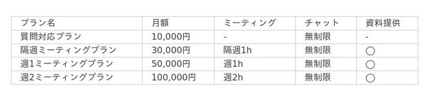 - オンライン面談:1 時間/回(頻度はプランに準拠)