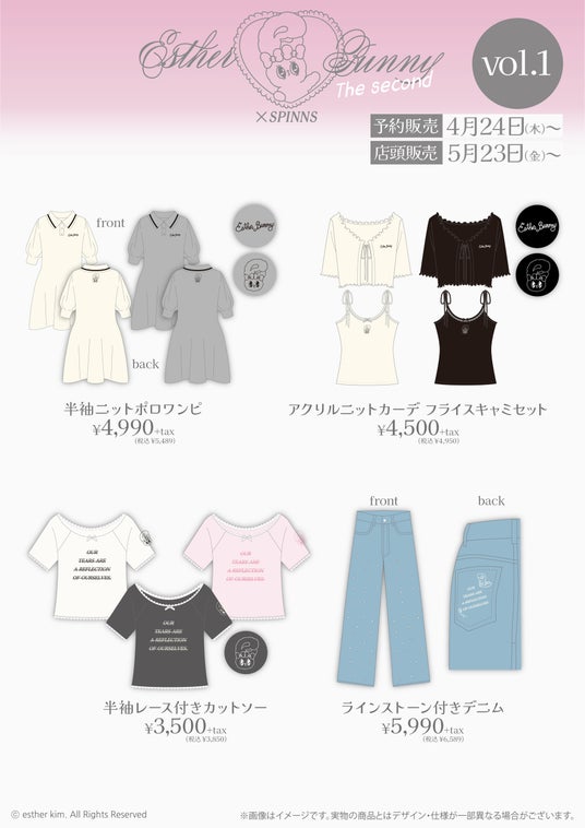 アパレルでは、レース付きカットソーやポロニットワンピースなど、コンサートや特別な日に着ていきたくなるようなアイテムを展開。日常にも馴染むけれど “エスターバニーらしさ” が感じられるデザインで企画いたしました。