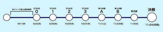 MJトップ雀士選抜期間:2025年5月(中旬からを予定)~8月。上位成績者10名が「STAGE3」へ、準トップ雀士10名が「STAGE2」へシード進出。