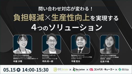 カスタマーサポートを自動化するAIエージェント「AIto(アイト)」とVOCで応対品質を見える化する「CC Survey」を提供するメディアリンク株式会社(本社:東京都港区、代表取締役:松本 淳志、以下 メディアリンク)は、株式会社インゲージ(本社:大阪府大阪市、代表取締役社長:和田 哲也)が主催する無料オンラインセミナーへ登壇いたします。