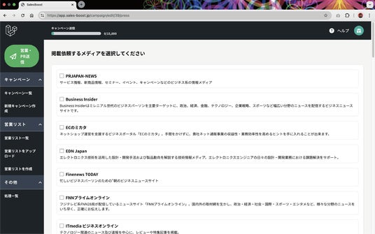 セールスブーストには従来の営業活動を超えた新しい活用法があります。通常のフォーム営業とは別に、国内の主要メディアへ向けたプレスリリースの一斉配信が可能であり、企業のPR活動にも活用できます。これまで有料での配信が必要だったプレスリリースの発信も、セールスブーストを利用することでコスト削減と業務効率化を実現します。