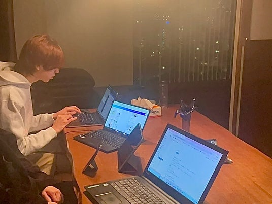 メンバーの自宅で実施したプログラミング勉強会の様子。