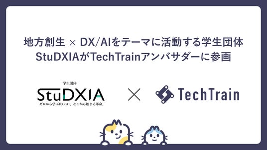 株式会社 TechBowl(本社:東京都千代田区/ 代表取締役:小澤政生/ 以下、当社)の運営するエンジニア向け教育・HRプラットフォーム「TechTrain」において、学生主導でDX/AIを活用した地域や地方自治体の課題解決を中心とした活動をする学生団体「StuDXIA」を新たにTechTrainアンバサダーに迎えました。