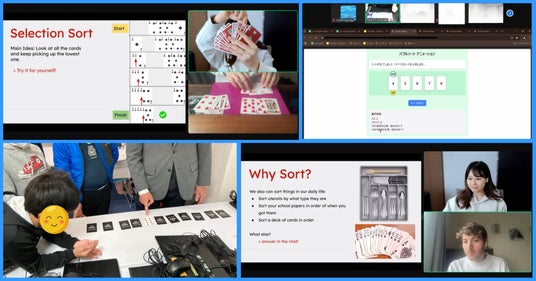 第3回 のイベントの様子です。世界中から子どもたちとスタッフが参加されました!トランプとコインを使って楽しくサーチ&ソートアルゴリズムを学びました!現地で開催された熊本会場も大変盛り上がりました