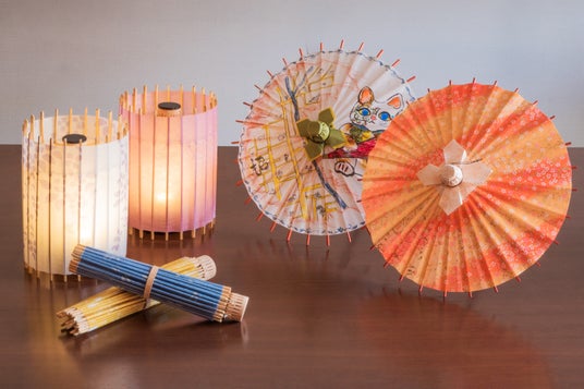 和傘の技法や素材を用いて照明を作る体験(¥8,800税込)