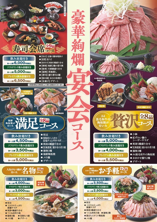 ご家族やご友人、同僚の方とのお食事や大勢でのご宴会など、様々なシーンでご利用いただけます。