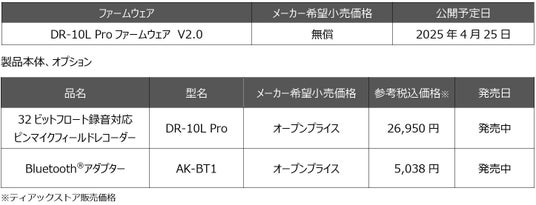 【DR-10L Pro ファームウェアV2.0 ダウンロードURL】