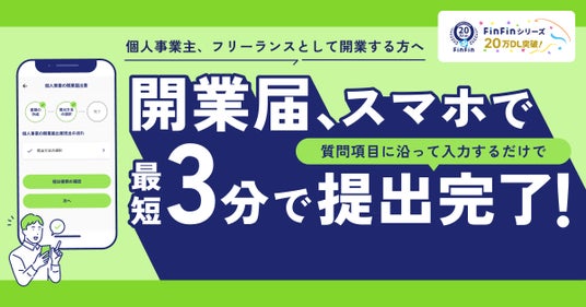 「新たな信用基盤で、フリーランスが活躍できる社会をつくる。」をミッションに、フリーランス/個人事業主や副業者向けスマホ会計アプリ「FinFin」を提供する会計バンク株式会社(東京都千代田区大手町、代表取締役社長:反町 秀樹、以下「会計バンク」)は、スマホ完結型の開業支援サービス「スマホ開業FinFin」を4月28日(月)に提供開始いたしました。「スマホ開業FinFin」は、個人事業主が事業を開始する際に必要な開業届や青色申告承認申請書をスマホ1台で作成でき、さらに電子申請にも対応することで、印刷や郵送の手間を一切省きます。これにより、既にフリーランスや個人事業主として活動していながら、まだ開業届を提出していない方や、今後副業や本業と並行して起業を目指す方にとっても、起業準備にかかる時間と手間を大幅に削減し、限られた時間の中で効率的に開業手続きを進めることが可能になります。