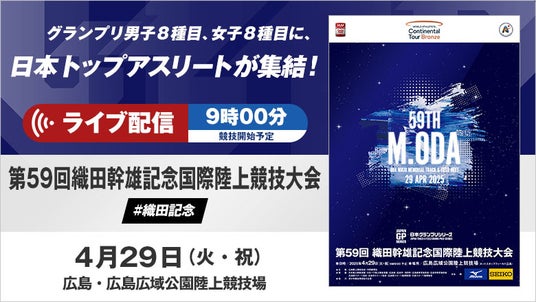 2025年4月29日(火・祝)に広島広域公園陸上競技場で開催する開催する日本グランプリシリーズ「59回織田幹雄記念国際陸上競技大会」を日本陸連公式YouTubeにてライブ配信することが決定しました!