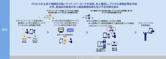 ※将来の活用イメージ(下図)では、学生は鉄道会社の窓口には行く必要はなく、全てオンライン上で定期券購入が可能。