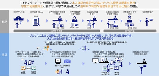 大阪大学では本年1月からデジタル学生証の運用が開始されており、将来の機能拡張を見据え、通学定期券購入における学生や大学、鉄道会社の職員の負担軽減に資する取組みとして、本実証実験に協力いただきました。