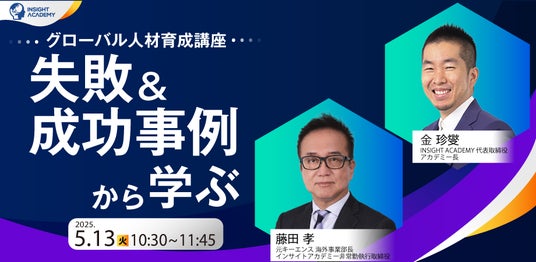 グローバル人材育成・研修業を手掛けるインサイトアカデミー株式会社(本社:東京都港区新橋、代表:金 珍燮)は、無料webセミナー「グローバル人材育成講座【失敗&成功事例から学ぶ】」を2025年5月13日(火)10:30より開催しします。