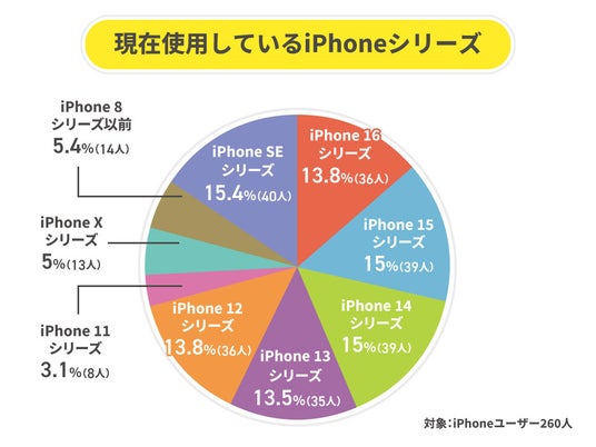 現在の使用機種を尋ねたところ、最新の iPhone 17 シリーズ(2024 年発売)から iPhone 14 シリーズ(2022 年発売)までの“3 世代以内”を持つユーザーが 57.3 % に上りました。
