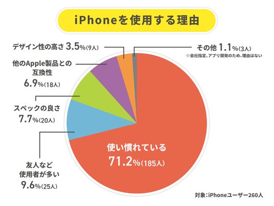 iPhoneを使い続ける最大の理由は「使い慣れている」(71.2 %)で、“わざわざ乗り換える理由が見当たらない” という心理が強く働いているようです。