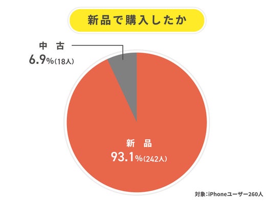 現在使用している iPhone の購入形態を尋ねたところ、93.1 %が「新品を購入した」と回答しました。