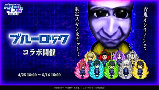 最大100人のキャラクターが青鬼から逃げ回るマップの中で最後の一人として生き残ることを目指すオンライン・サバイバルゲーム『青鬼オンライン』にて、TVアニメ『ブルーロック』とのコラボを4月25日(金)15時より開始いたします。