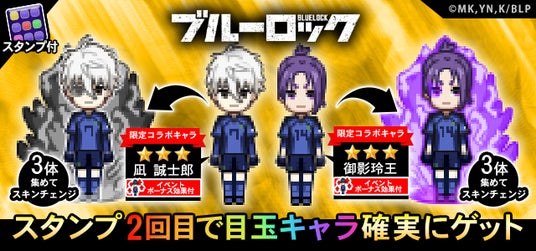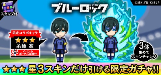 ・週ごとに切り替わる期間限定ガチャにて「潔 世一」「凪 誠士郎」「御影玲王」「馬狼照英」「士道龍聖」「糸師 冴」「オリヴァ・愛空」が登場
