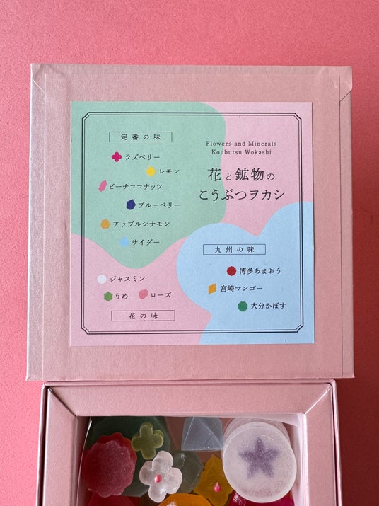 また、大人気の九州各県の厳選素材の美味しさを引き出した琥珀糖「九州のこうぶつヲカシ」シリーズより、博多あまおう苺味、宮崎マンゴー味、大分カボス味をセレクト。
