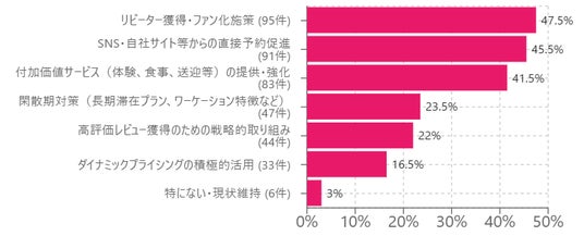 - SNS・自社サイト等からの直接予約促進:91件(45.5%)
