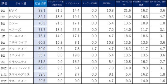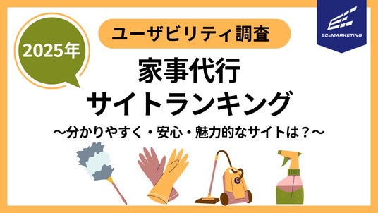 ECマーケティング株式会社(所在地:東京都港区、代表取締役社長:中山高志、以下「弊社」)は、これまでの民間企業・官公庁等Webサイトのユーザビリティ調査で得た知見に基づき、主要な家事代行サービス提供企業(利用者数・知名度等を基準に選出した12サイト)を対象にユーザビリティ調査を実施し、「2025 家事代行サイト ユーザビリティランキング」を作成しました。