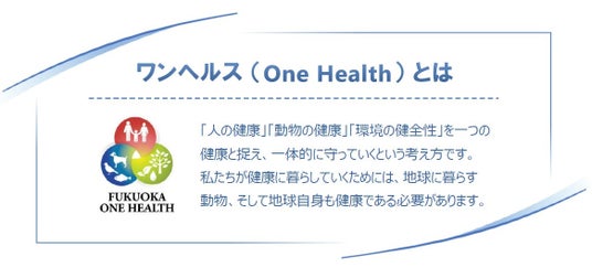 ※2 ワンヘルスとは:人と動物の健康と環境の健全性を一つと捉え、一体的に守っていく理念。福岡県は、2016年に開催された「第2回世界獣医師会ー世界医師会”One Healthに関する国際会議”」でまとめられた「福岡宣言」の地として、ワンヘルス推進に関する基本条例の制定や推進行動計画の策定など、ワンヘルスの推進に取り組んでいる。