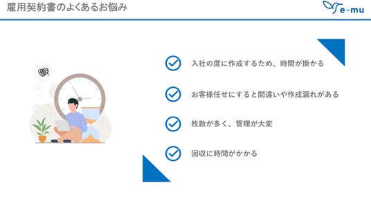 株式会社nexus(大阪府阿倍野区、代表取締役:山本達矢)と株式会社Gonmura(大阪府大阪市西区、代表取締役:吉田光輝)は、社会保険労務士の実務経験を活かし、雇用契約書の作成・管理を支援するクラウドSaaS「e-mu(エミュ―)」β版をリリースしたことをお知らせいたします。