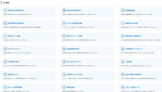 e-muには他にも多様な機能があります。雇用契約書のすべてをこの一つで管理し企業様と社会保険労務士法人事務所のインフラを目指します。一括コピー・一括公開:作成した雇用契約書は複数人に一括コピー、一括公開で大幅効率化。