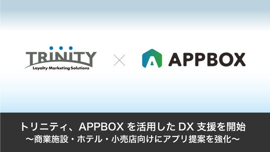 株式会社トリニティ(本社:東京都千代田区、代表取締役社長:上野 健、以下「トリニティ」)は、株式会社アイリッジ(本社:東京都港区、代表取締役社長:小田 健太郎、東京証券取引所グロース:3917、以下「アイリッジ」)が提供するアプリビジネスプラットフォーム「APPBOX」のコンサルティングパートナー契約を締結しました。