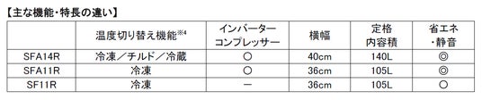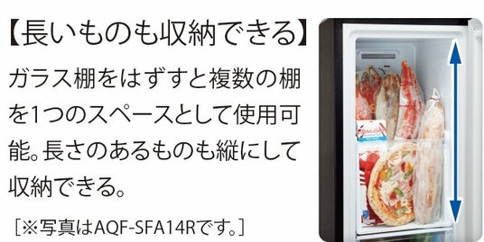 - 「セカンド冷蔵庫」としても使える!冷蔵・チルド・冷凍の温度切り替え機能付(※4)(AQF-SFA14Rのみ)