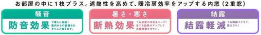 暑さ・寒さ対策ができ、節電にも貢献できます。そのほか、室内からの音漏れを防ぐ防音効果や、結露の軽減にも役立ちます。
