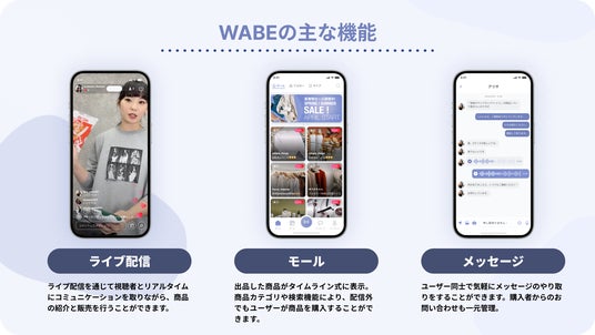 「WABE」は “Watch” ”Ask” “Buy” “Enjoy” の頭文字をとった名前であり、「見て、きいて、買って、たのしい!」というコンセプトにはそうした思いを込めました。当社は2017年から多様なプラットフォームでライブコマースを経験してきたノウハウを生かして「WABE」を運営し、ライブコマースをより身近なものにし、市場のインフラとして定着させることを目指してまいります。その実現に向け、配信者が活躍しやすく、視聴者が安心して楽しめる環境を提供するため、引き続きサービスの向上に努めていきます。