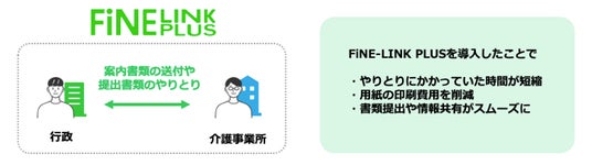 介護認定情報の取得申請など、事業者から行政に対して提出する書類についてもやりとりができるようになり、行政から地域の介護施設へ案内や周知をするためのツールとしても「FiNE-LINK PLUS」を活用しています。