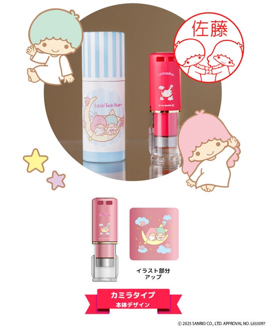 「サンリオキャラクターずかん」は、ハローキティ、マイメロディ、シナモロール、ポムポムプリンといったサンリオの人気キャラクターのイラストと好きな名前でつくれるオーダーメイドのはんこ。「リトルツインスターズバージョン」は、その第5弾として登場しました。今回はこれまで販売していたクイックC9タイプから「CAMILAタイプ」に、さらにおしゃれに可愛くなってリニューアルしました。