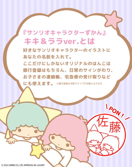 インターネットのはんこ屋さん「印鑑はんこSHOPハンコズ」を運営する株式会社岡田商会(所在地:大阪府大阪市、店長:岡山耕二郎)は、株式会社サンリオのキャラクター「リトルツインスターズ(キキ&ララ)」に押すたびに会えるはんこ「サンリオキャラクターずかん(リトルツインスターズver.)」にて、リップスティックのような「CAMILAタイプ」の販売を開始しました。