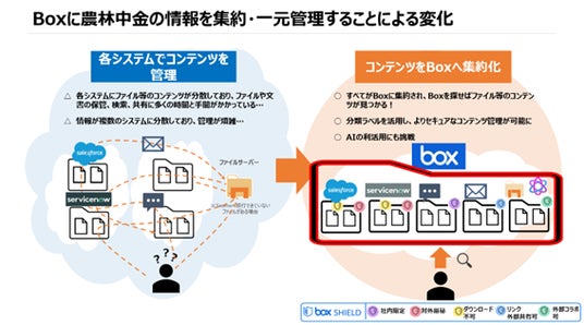 農林中金によるBoxを活用したCXを実現するインフラストラクチャ構築のイメージ