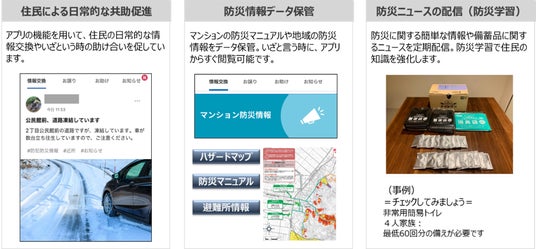 GOKINJOは「それぞれがちょうど良いご近所付き合いができる社会をつくる」をミッションに、マンション住民や自治会などで日常的に使えるデジタルサービス(スマートフォンアプリ+WEBシステム)とリアルサービス(コミュニティ支援)を併用したサービスを提供しています。デジタル掲示板などを用いた住民同士の日々の交流や、防災訓練やワークショップなど住民同士の直接的(リアル)な交流を通じて、災害時に住民自らが集合知を生かし、共助を促進できる仕組みと、その持続を推進するためのサポートを実施しています。