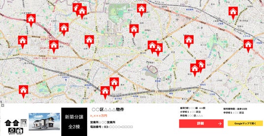 また、地図表示機能で物件の場所がひと目でわかり、駅からの距離や周辺環境も簡単にチェックできます。