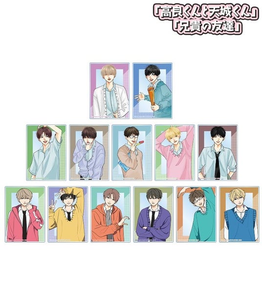 高良くんと天城くん 4巻、高良くんと天城くん 5巻、兄貴の友達 3巻、兄貴の友達 僕らのおうちの表紙イラストをA6サイズのアクリルパネルに仕上げました。