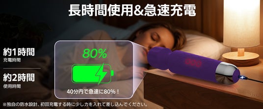 約40分で80%充電可能な急速チャージと、最大2時間の連続使用を両立。USB充電対応で、外出先でもスマートに使えます。